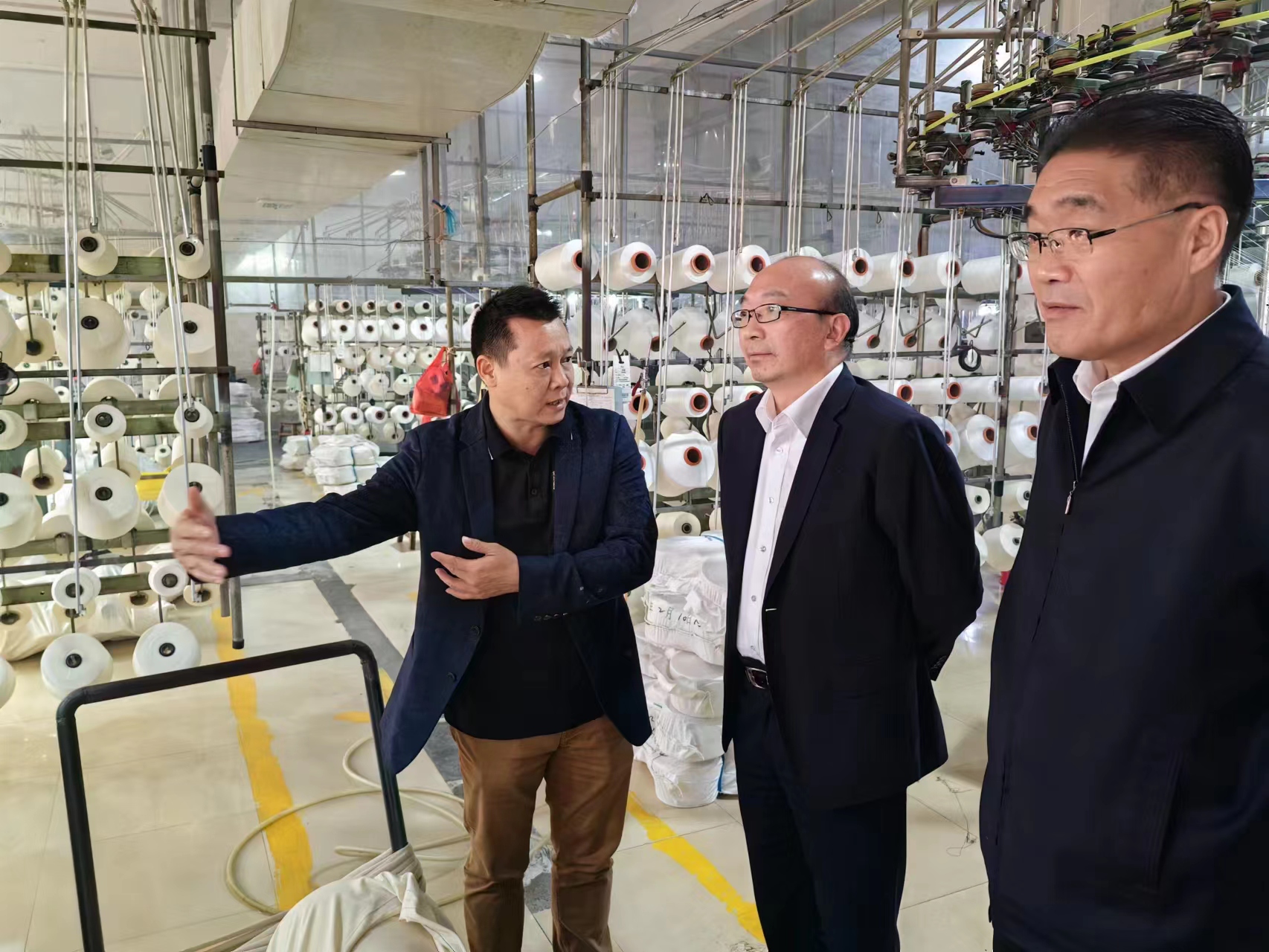 在匯年豐紡織公司,丁銳一行在陸汝針總經理的陪同下參觀了該公司紡織生產線,并就產品定位、成本、質量及交期等有關情況進行了座談交流。雙方表示,工投集團與匯年豐紡織建立了良好的業務合作關系,希望下一步能夠繼續加深合作,擴大業務量。