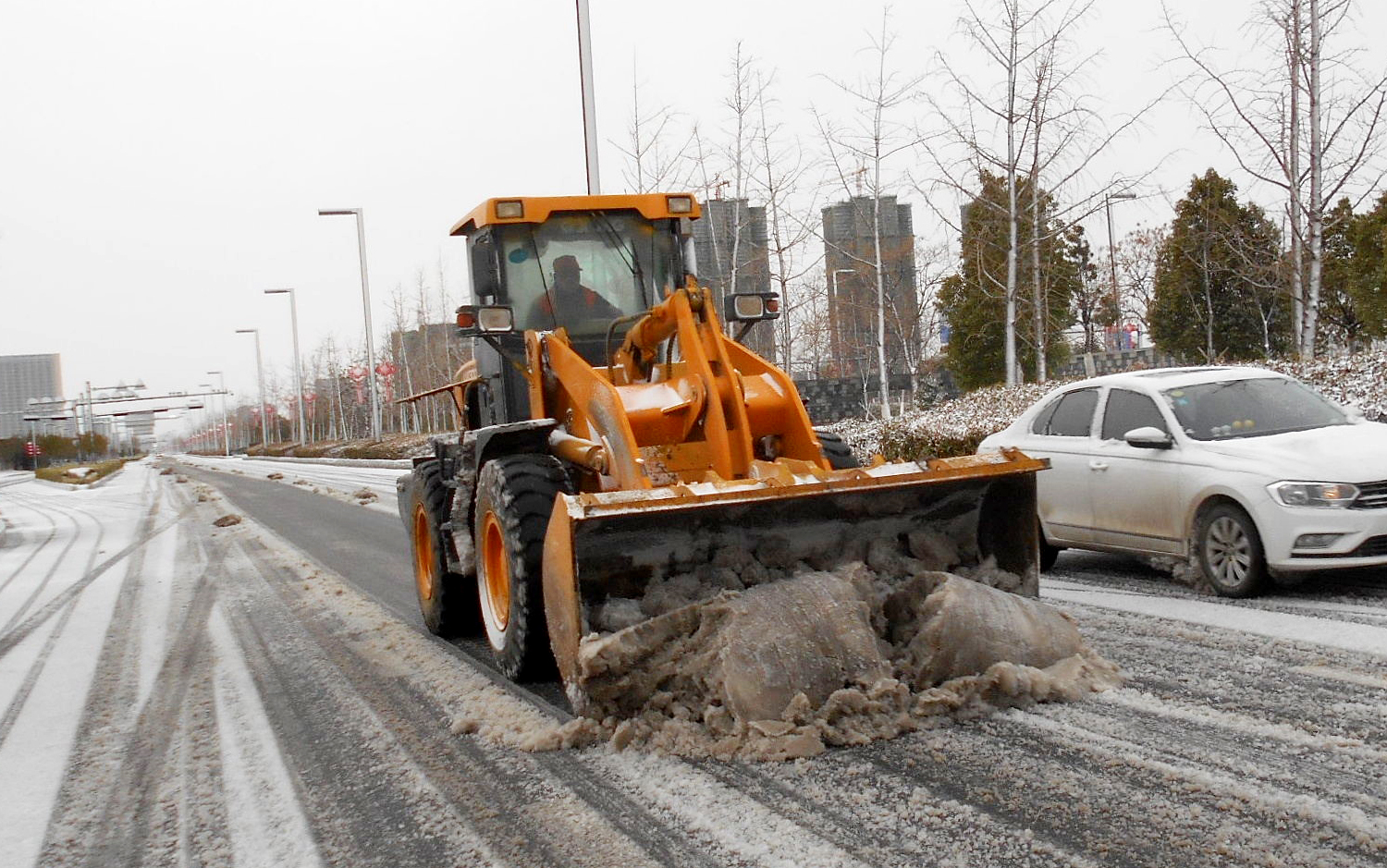 在開發(fā)區(qū)、徐圩新區(qū)、灌云臨港產(chǎn)業(yè)區(qū)的各個區(qū)域,到處都是集團綠化保潔人的最美身影,他們在各單位黨員先鋒隊、青年突擊隊的配合下,帶上融雪劑和作業(yè)工具,發(fā)揚不怕艱苦、連續(xù)作戰(zhàn)、敢打敢拼的工投精神,對交通要道、橋梁、彎道等重點防滑路段進行清雪防凍處理,鋪灑融雪劑40余噸,為疫情防控期間車輛行人出行安全增添一份保障。
