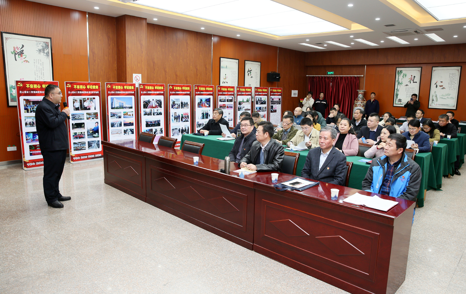1129日上午,市委“不忘初心、牢記使命”主題教育第十指導組在氨綸公司召開主題教育現場觀摩會,第十指導組組長、二級巡視員、原市委副秘書長徐毓敏,副組長、市國資委黨委委員、四級調研員王懷東,港口集團、城控集團、康緣集團等我市10家企業黨組織副書記、黨群部門負責人等共計30余人參加觀摩會。
