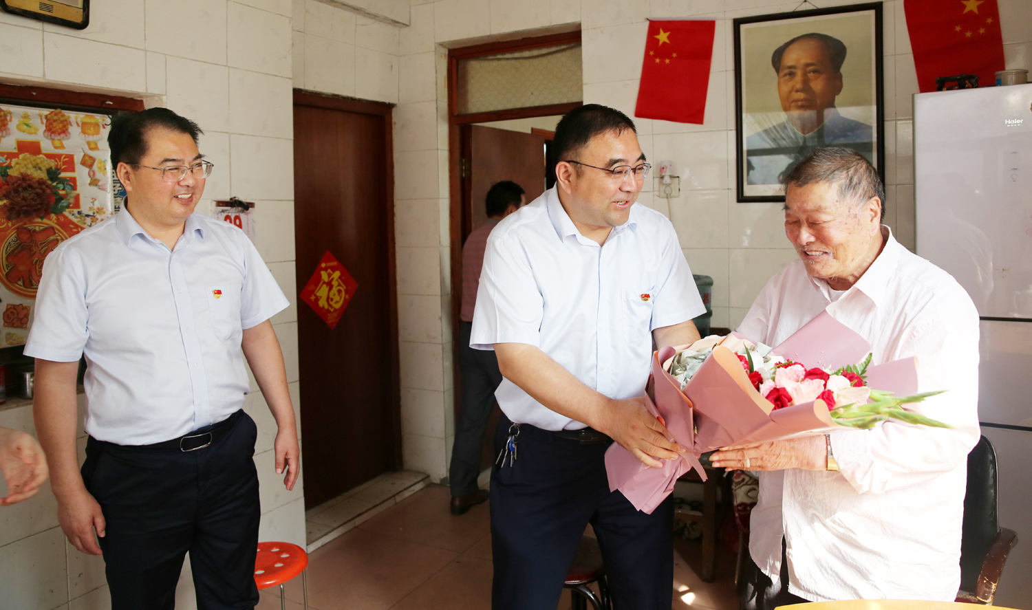 集團公司董事長、黨委書記楊龍,總經理胡建明、黨委副書記戴鴻鳴、紀委書記汪群等領導分組走訪慰問部分建國前參加工作的老黨員、老干部,為他們送去慰問金和鮮花,同慶新中國七十周歲華誕。