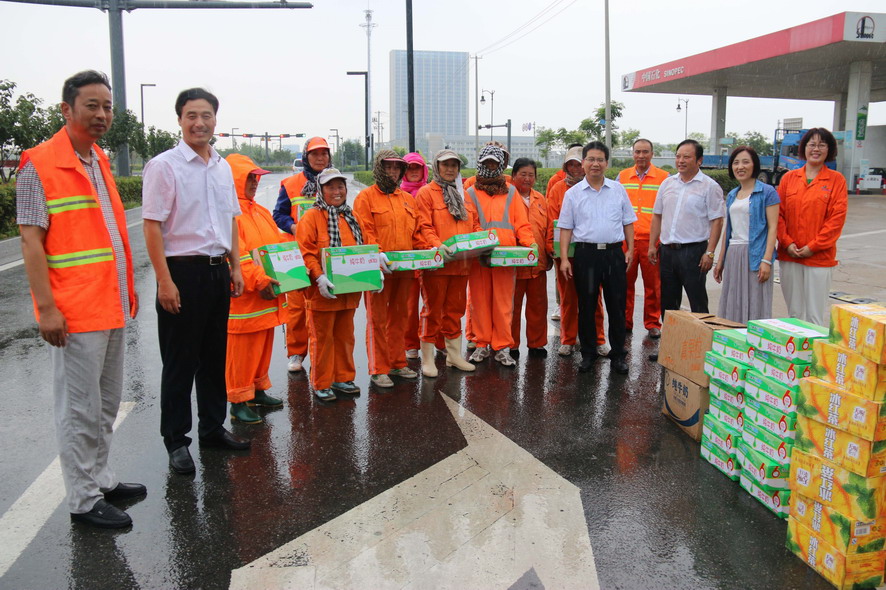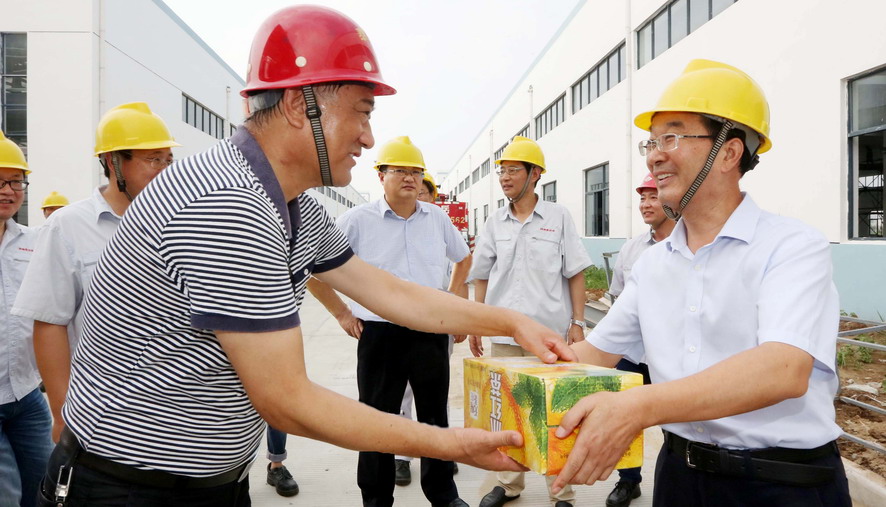 連日來,驕陽似火,酷暑難當。728日,集團公司楊龍、胡建明、楊國新、戴鴻鳴、匡友本、陳如軍等領導分赴基層一線,進車間、入工地、到灘(田)頭,慰問在高溫下堅守崗位的一線員工,送去冰紅茶、綠豆等防暑降溫品,在炎炎夏日中將“清涼”送到職工心坎上。