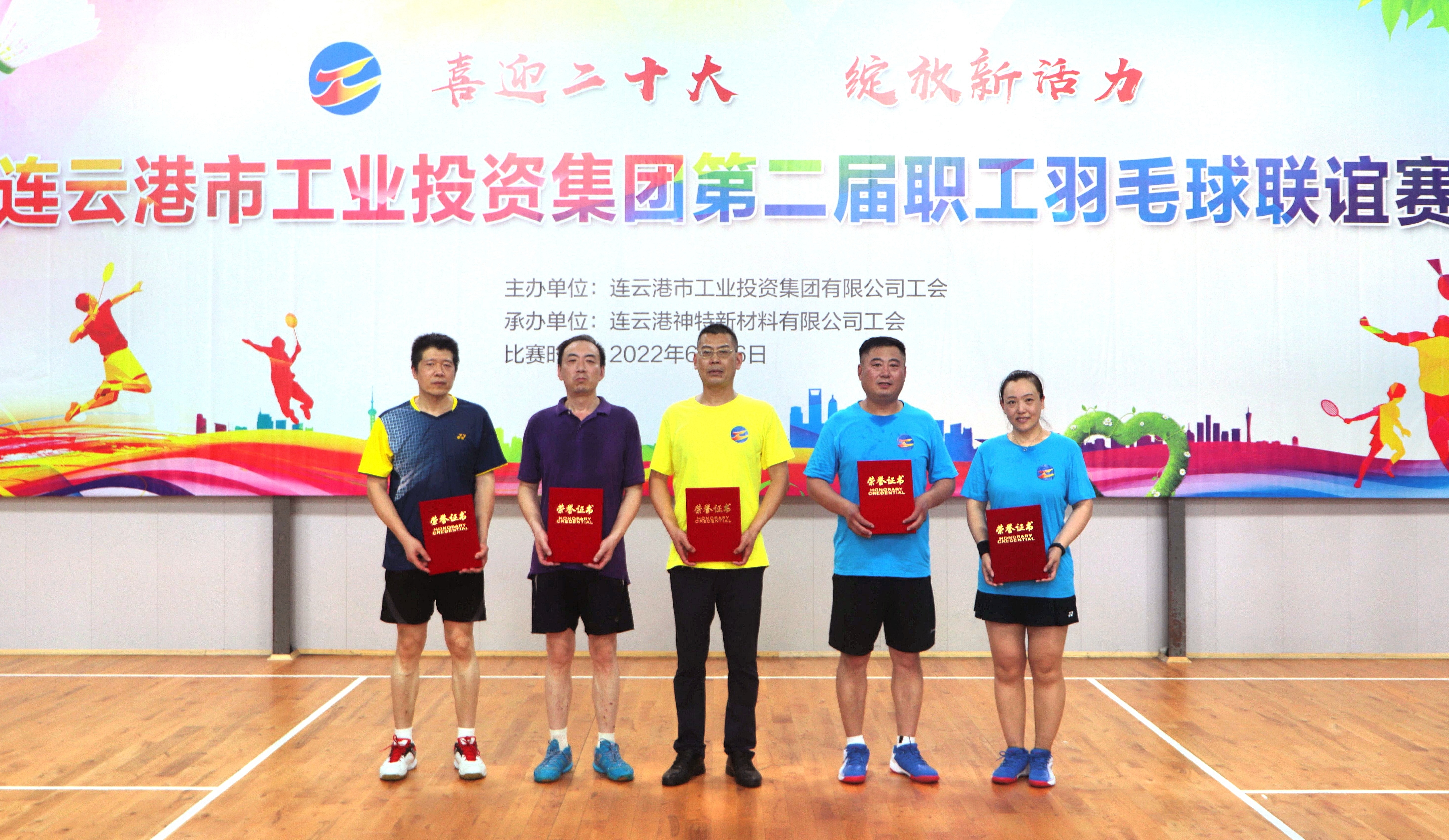 聯誼賽混合團體、男子雙打和男女混合雙打三個競賽項目。經過近一天的緊張角逐,神特公司奪得混合團體項目第一名,氨綸、臺北、利海等單位分獲二、三名。氨綸公司陶波、許林組合,灌西投資公司楊加軍、張明莉組合分別名列男子雙打混合雙打項目第一,來自華茂、徐圩、奧神、臺北、利海、氨綸等單位的選手分獲雙打項目二、三名。