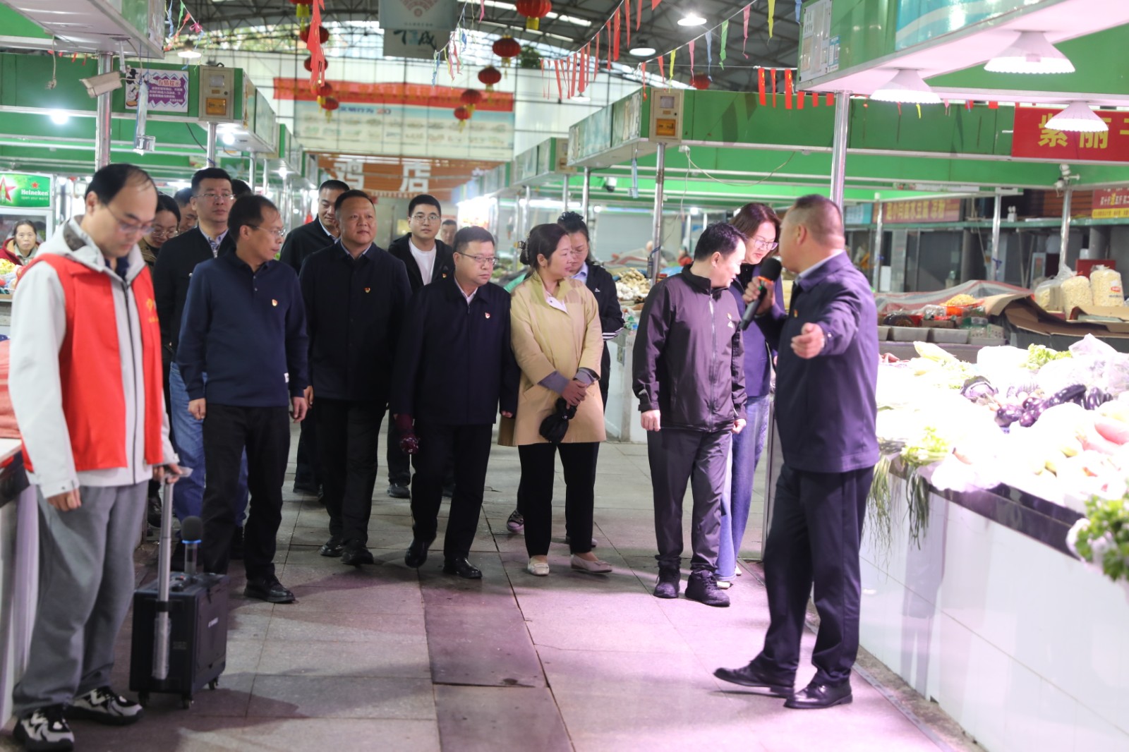 活動(dòng)中,觀摩團(tuán)沿著精心設(shè)計(jì)的路線,先后走進(jìn)四大特色點(diǎn)位,每一處都展現(xiàn)出鮮明的黨建特色與發(fā)展活力。在金橋房地產(chǎn)公司黨總支負(fù)責(zé)的連云港國際醫(yī)藥創(chuàng)新產(chǎn)業(yè)園,“燈塔先鋒” 培育對(duì)象徐震結(jié)合產(chǎn)業(yè)園從規(guī)劃建設(shè)到招商運(yùn)營的全流程,詳細(xì)分享了黨組織如何在產(chǎn)業(yè)布局、服務(wù)企業(yè)、創(chuàng)新發(fā)展中發(fā)揮 “主心骨” 作用,其 “黨建 + 產(chǎn)業(yè)” 的融合模式,讓在場(chǎng)人員深刻體會(huì)到黨建引領(lǐng)對(duì)產(chǎn)業(yè)高質(zhì)量發(fā)展的強(qiáng)大賦能;隨后,觀摩團(tuán)來到供電工程分公司黨委負(fù)責(zé)的光伏運(yùn)維現(xiàn)場(chǎng),培育對(duì)象賀通華以光伏板下的 “紅色運(yùn)維”為主題,講解了黨組織如何帶領(lǐng)團(tuán)隊(duì)攻克技術(shù)難題、保障新能源高效輸出,綠色能源與紅色黨建的碰撞,為大家提供了“雙碳”目標(biāo)下黨建工作的新思路;在王建勞模工作室,培育對(duì)象王建通過展示技術(shù)創(chuàng)新成果、分享師徒傳承故事,生動(dòng)詮釋了“勞模精神 + 黨建引領(lǐng)”的育人模式,工作室里滿墻的榮譽(yù)與實(shí)用的創(chuàng)新工具,讓“精益求精、敢為人先”的精神深入人心;最后一站來到了金航公司巨龍農(nóng)貿(mào)市場(chǎng),培育對(duì)象韓永躍圍繞“黨建+民生服務(wù)”,介紹了如何通過黨員示范崗、志愿服務(wù)隊(duì)等載體,優(yōu)化市場(chǎng)管理、提升服務(wù)質(zhì)量,切實(shí)保障群眾“菜籃子”安全,讓黨建成果看得見、摸得著。