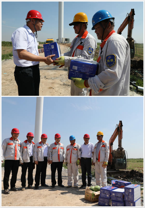 7月17-18日,公司經理孫政權,副經理袁慶國、副經理傅健深入青口、臺北、灌西等供電所,看望奮斗在施工一線的職工,并為他們送去防暑降溫品。 施工現場烈日高照,暑氣蒸騰,公司領導走進職工中間,同大家一一握手問好,并仔細詢問職工防暑降溫措施。孫政權經理代表公司對一線職工高溫下仍堅守施工一線表示由衷的感謝和崇高的敬意。他強調,夏季期間,職工們一定要采取必要的防暑降溫措施,嚴格執行安全操作流程,隨身攜帶防暑降溫藥品,保證人身安全。各級領導一定要深入一線,關心職工的工作和生活,合理安排工作時間,把各項安全措施認真落實到位,確保職工時刻保持良好狀態,有序推進公司各項工程任務。(電宣)