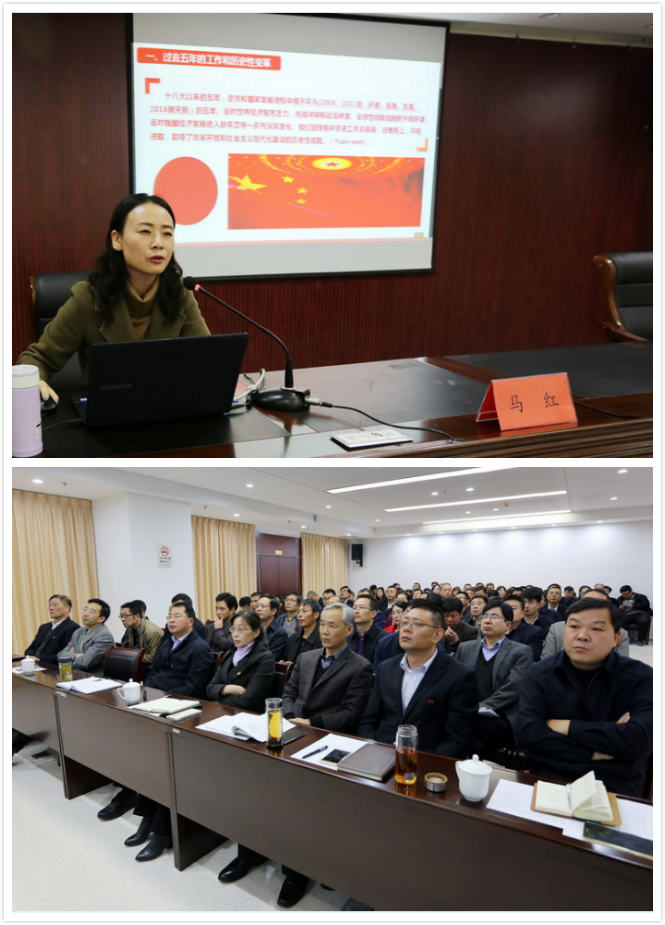 本場報告會邀請市委黨校沿海開發(fā)研究室副教授馬紅主講。馬紅教授以《不忘初心,牢記使命,為實現(xiàn)中華名族偉大復(fù)興的中國夢不懈奮斗!》為主題,從鮮明主題、歷史性變革、主要矛盾的深淵影響、兩個一百年奮斗目標(biāo)、全面從嚴(yán)治黨等13個方面出發(fā),引用了古今中外大量案例,配合通俗的語言和生動的幻燈片,系統(tǒng)而詳實地向在座黨員介紹了“黨的十九大報告”精神與內(nèi)涵,并結(jié)合經(jīng)濟(jì)建設(shè)的相關(guān)內(nèi)容,給我公司的發(fā)展提出了寶貴意見。