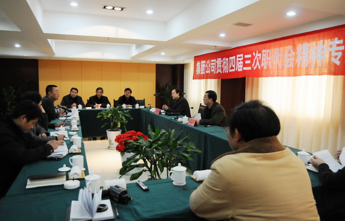 3月3日上午,集團公司總經理胡建明、副總經理陳寶祥以及集團公司有關部門負責同志來公司,就集團公司四屆三次職代會精神貫徹落實情況進行專題調研。集團公司副總經理陳寶祥主持會議。公司黨委書記、總經理范益寶就集團公司四屆三次職代會貫徹落實情況及2011年公司生產經營、黨建工作作了專題發言。(司宣)