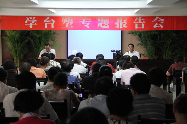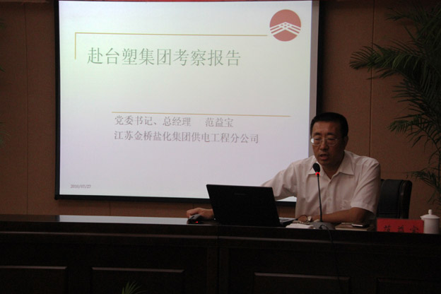 727下午,公司在淮鹽大酒店會議室召開學臺塑專題報告會。公司全體管理人員及部分職工代表近90人參加了報告會。公司黨委書記、總經理范益寶作了考察臺塑專題報告,報告會由公司黨委副書記、副總經理陳雨華主持。