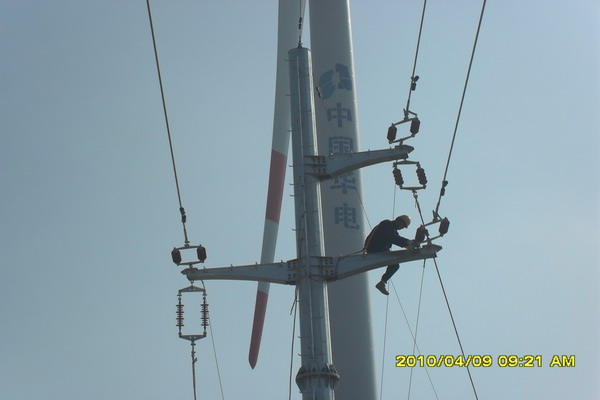 連日來,灌西供電所干部職工主動(dòng)放棄節(jié)假日,起早貪黑參與風(fēng)力發(fā)電線路安裝架設(shè)工程,目前各項(xiàng)工作進(jìn)展順利。上圖為工人正在進(jìn)行高空桿作業(yè)。(王志勇)