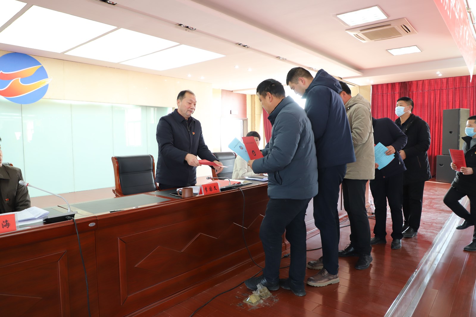 黨委書記、董事長、總經理李國文作《全面從嚴治黨工作報告》,紀委書記朱文海同志作《紀檢工作報告》;埒南制鹽公司、社區管理中心、宵洋物流等十五個支部簽定了《黨建工作目標責任書》和《全面從嚴治黨責任書》。