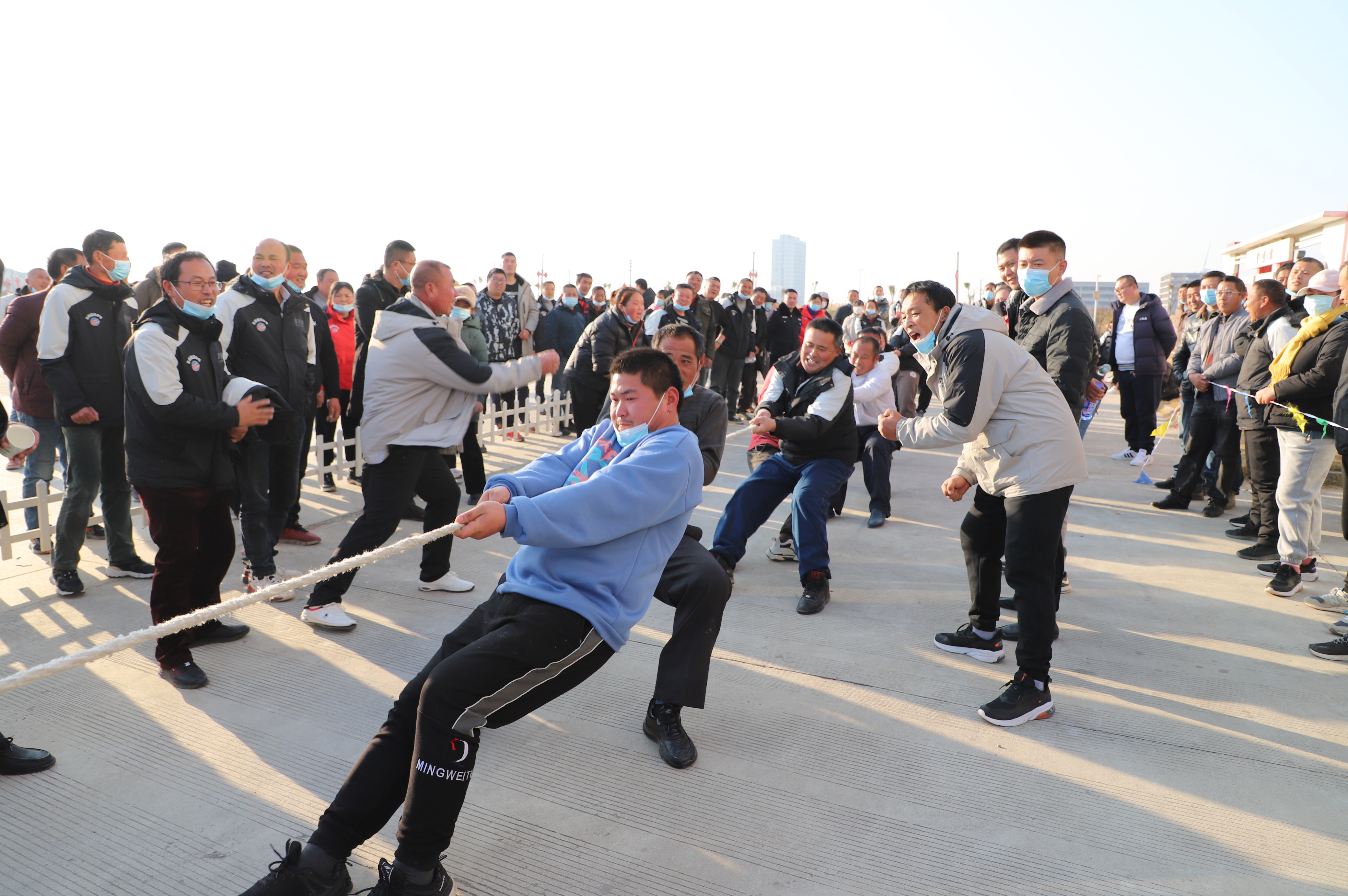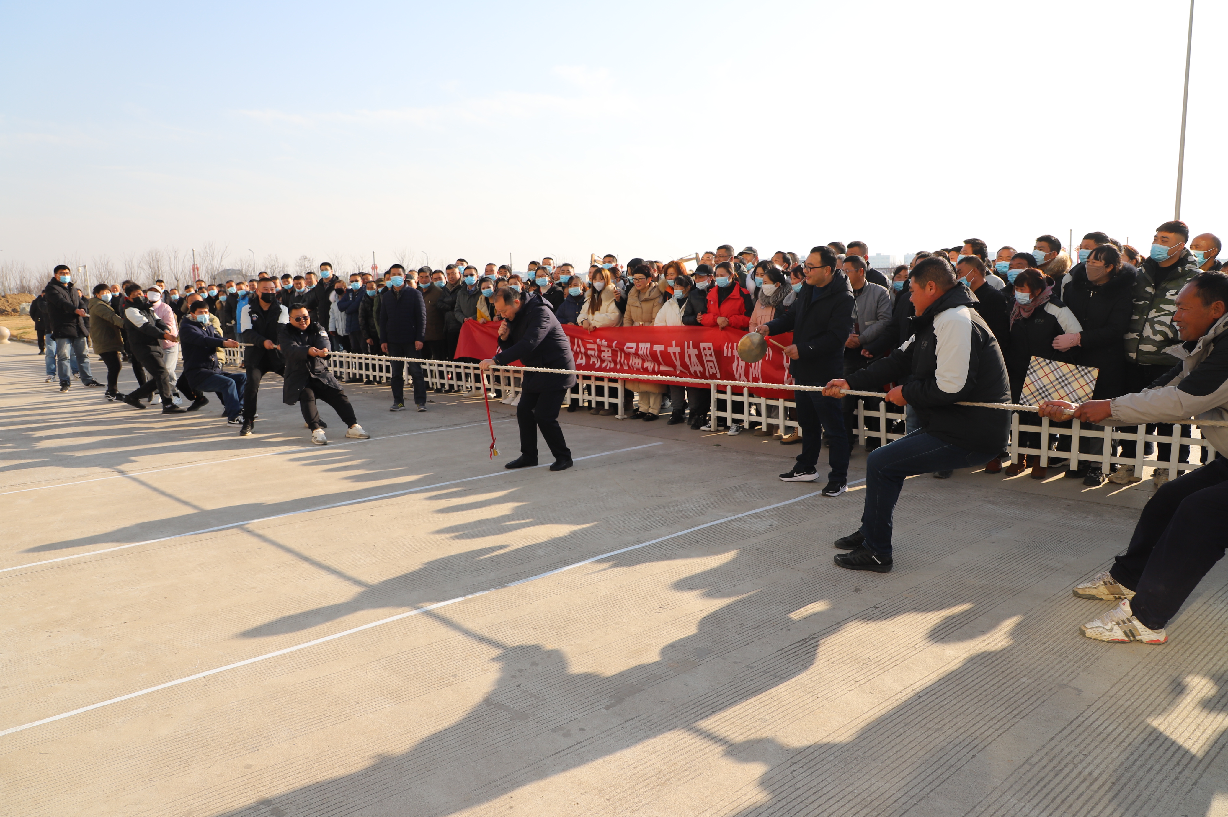 開幕式結束以后,緊張激烈的拔河比賽立即展開。由新河、埓南、宵洋等單位組織的13支參賽隊伍按照抽簽順序逐一上臺亮相。賽場上,鼓舞聲、吶喊聲此起彼伏,參賽隊員們團結協作、不到最后一刻永不言棄的精神贏得了在場觀眾的陣陣掌聲。經過近一個小時的激烈角逐,最終埓南制鹽分公司一隊力壓群雄,奪取拔河比賽第一名,新河制鹽分公司隊、新河制鹽分公司隊及宵洋物流公司代表隊分獲二至四名。