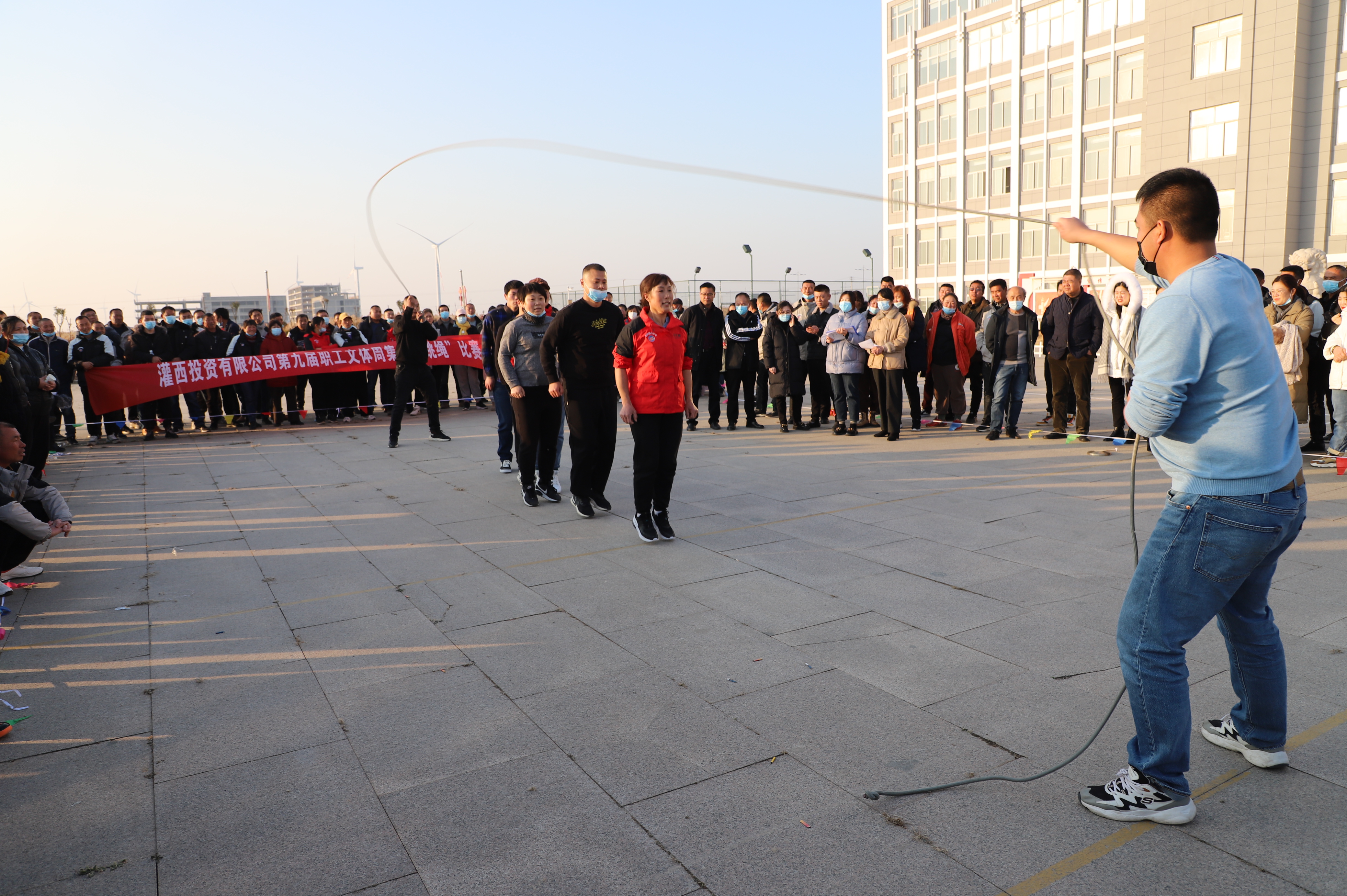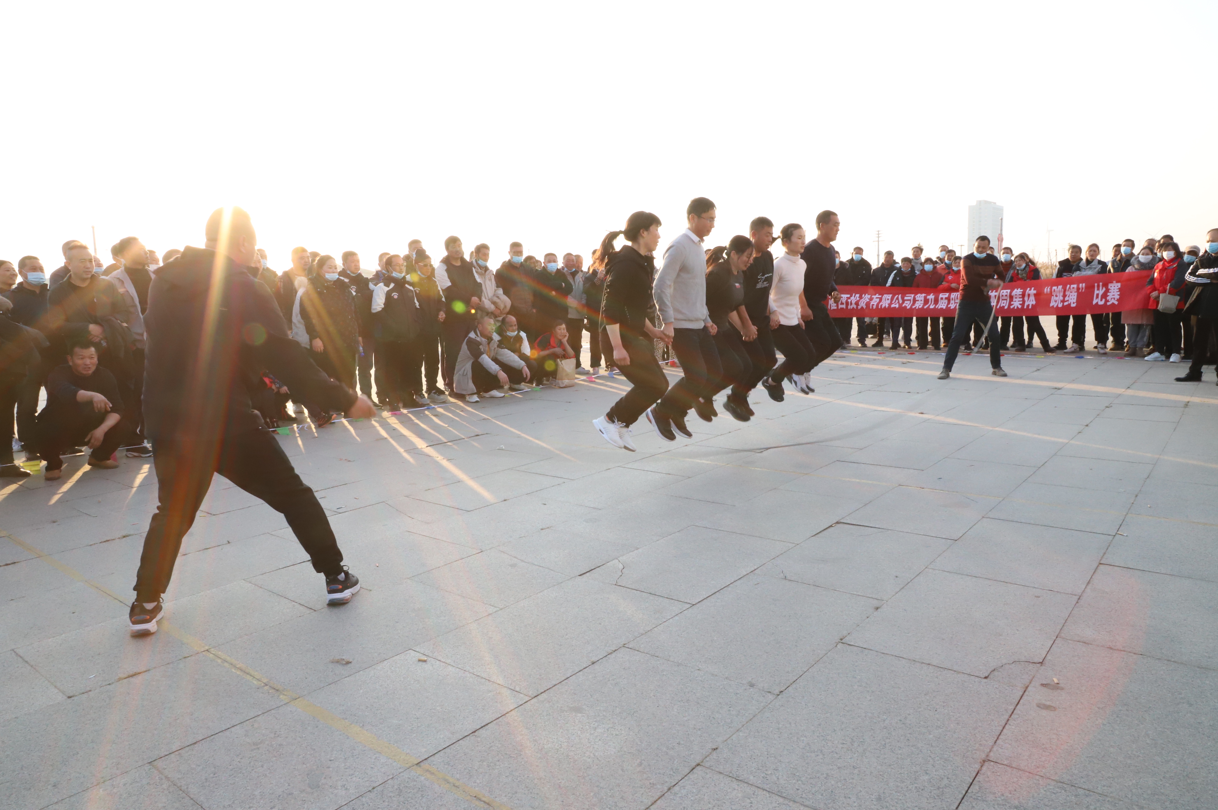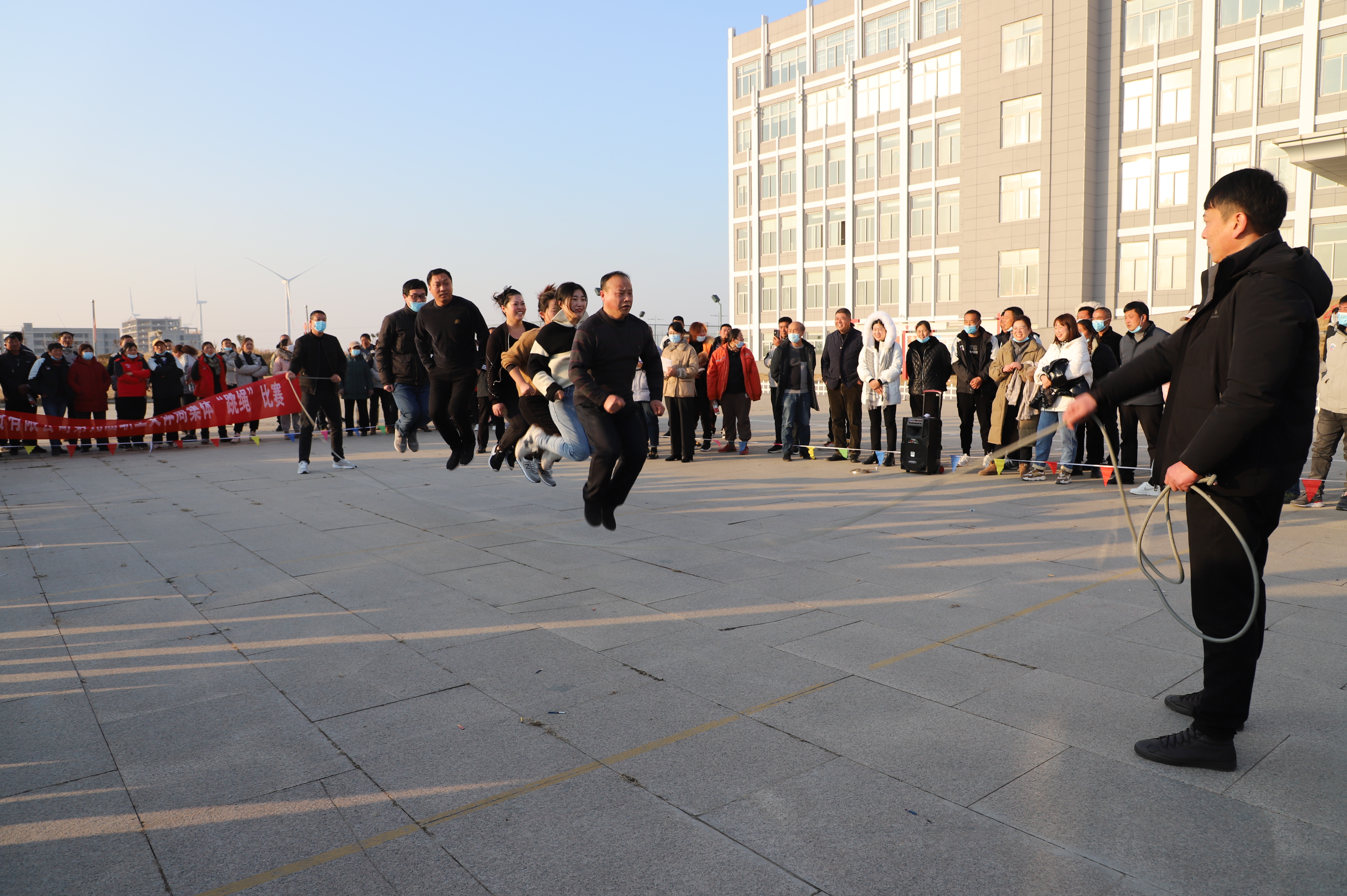 隨后進行跳繩比賽,來自南翼、新河、埒南等10支參賽隊伍逐一上臺比賽,觀眾隨著場上比賽隊員跳繩的節奏,不約而同地打著節拍、數著數,最終埒南制鹽公司代表隊憑借刻苦訓練與創新——參賽隊員手牽手共同協作,奪得第一名,新河制鹽公司、宵洋物流公司、生產服務中心分獲二至四名。(西宣)