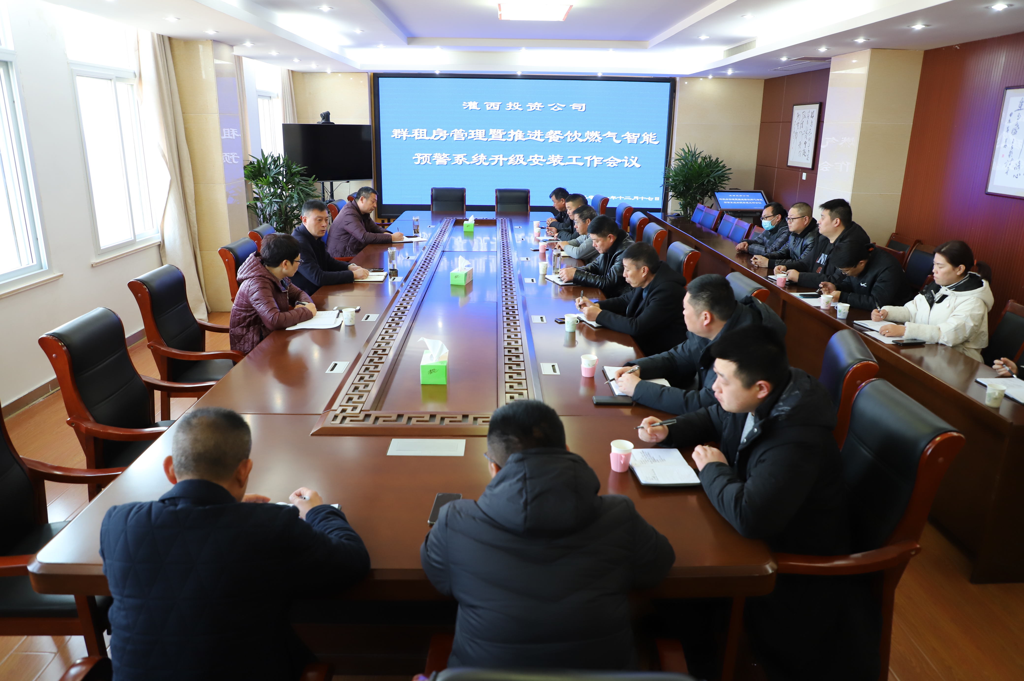 12月17日上午,灌西投資公司在機關三樓會議室召開“群租房管理暨推進餐飲燃氣智能預警系統升級安裝”工作會議,公司常務副總經理吳衛平、工會主席王宏、安全監管部以及各單位負責人參會。