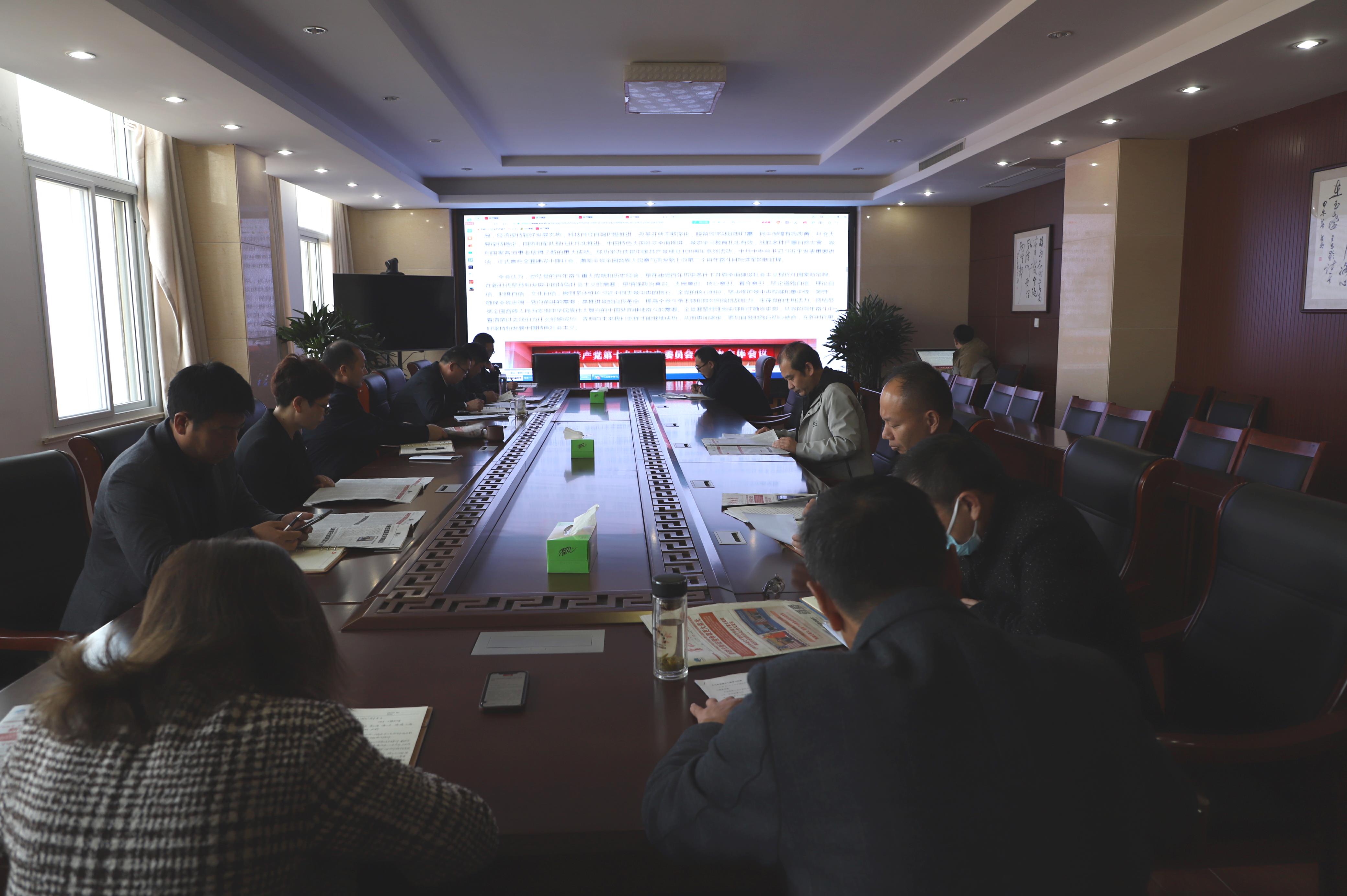 11月19日下午,灌西投資公司黨委召開十一月份中心組學習會,深入學習貫徹黨的十九屆六中全會精神。公司領導班子全體成員、黨群部門負責人等參加學習。