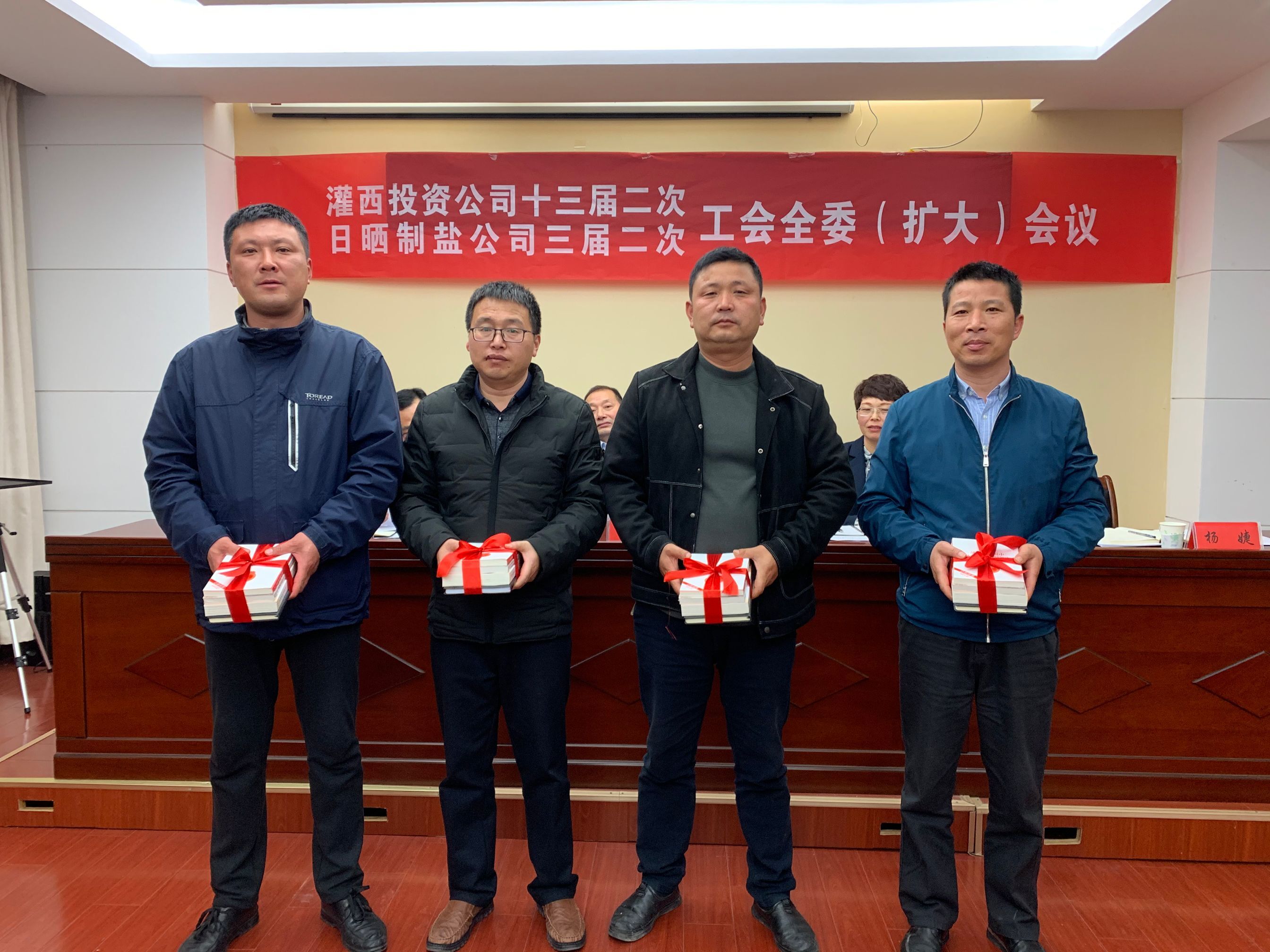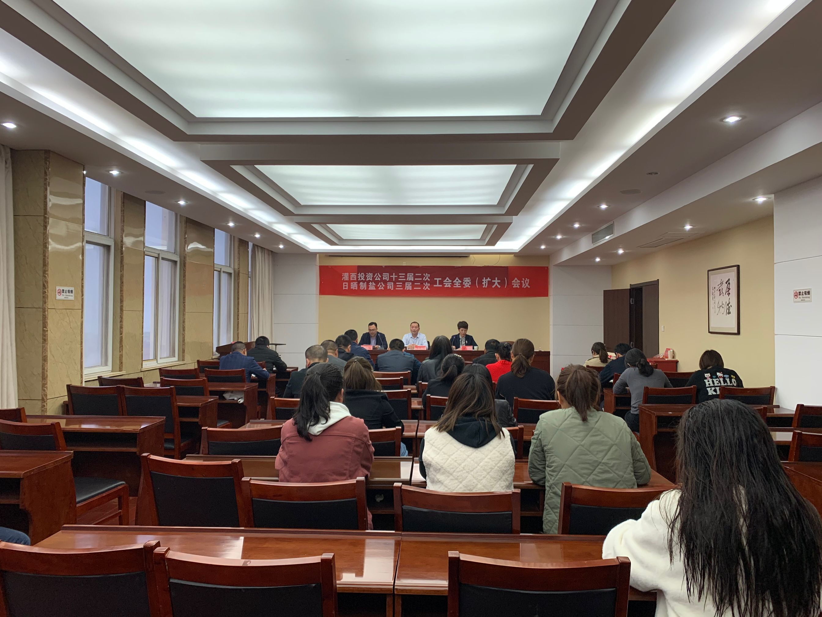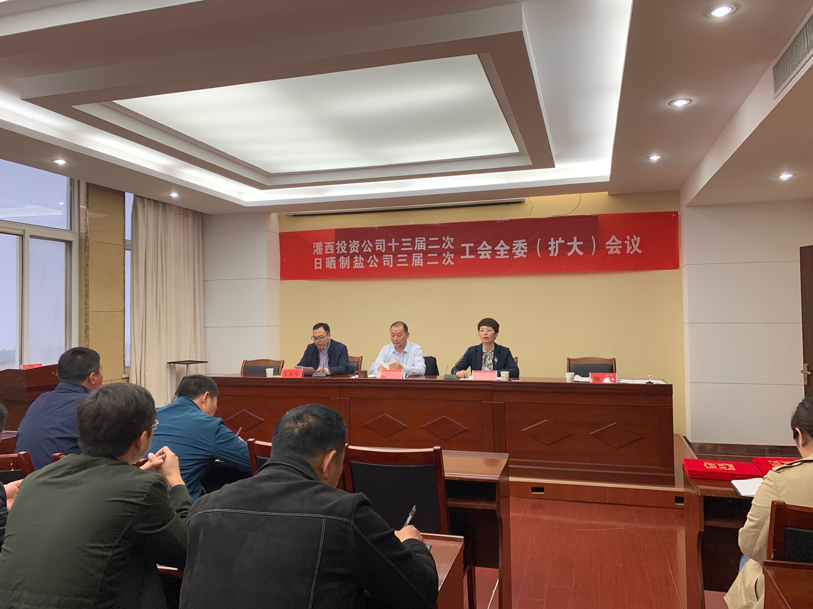 4月28日,灌西投資公司召開十三屆二次、日曬制鹽公司三屆二次工會全委擴(kuò)大會議,公司黨委書記、董事長、總經(jīng)理李國文出席會議并講話,工會主席王宏作工作報(bào)告。工會委員會全體委員,各單位工會主席、女工委主任參加會議。
