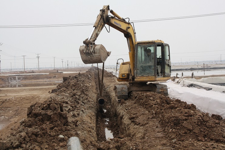 4月5日上午,日曬制鹽公司灘頭機(jī)械轟鳴,兩臺(tái)挖掘機(jī)正按照事先分工,有序的將深埋在地下的廢舊除硫管道挖掘出來。據(jù)了解,這些廢舊除硫管道按照原先設(shè)計(jì),主要用于承擔(dān)鹵水除硫后的輸送工作,后因生產(chǎn)工藝的改進(jìn),導(dǎo)致管道一直處于閑置狀態(tài)。而此次回收并再次利用這些管道主要是為了在進(jìn)一步改進(jìn)生產(chǎn)工藝的基礎(chǔ)上,最大化節(jié)約生產(chǎn)成本。據(jù)介紹,目前日曬制鹽公司在生產(chǎn)中主要采取串聯(lián)式加鹵的方式進(jìn)行,除硫后的鹵水無論輸送至哪一格塊,都必須按照先后順序依次經(jīng)過前排格塊,這不僅大大降低了輸送效率,也不利于對(duì)鹵水的有效管理,更造成了一部分浪費(fèi)。相比較而言,通過改串聯(lián)式加鹵為并聯(lián)式加鹵后,鹵水將會(huì)從除硫池直供缺鹵格塊,在提高供鹵效率的同時(shí),也能夠有效降低跑冒滴漏現(xiàn)象的發(fā)生。