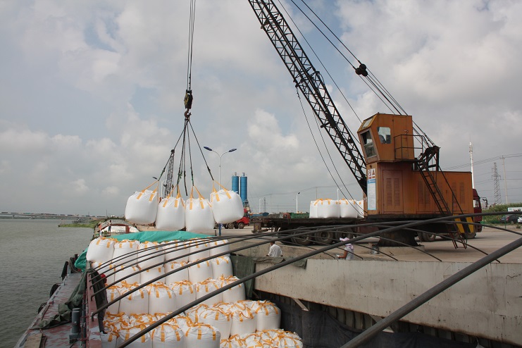 8月3日上午9點左右,當筆者來到宵洋物流公司五灌河碼頭時,這里已經到處是工人們忙碌的身影,吊機揮舞巨臂、車輛川流不息、現場管理者來回奔忙指揮、作業人員揮汗如雨緊張忙碌。