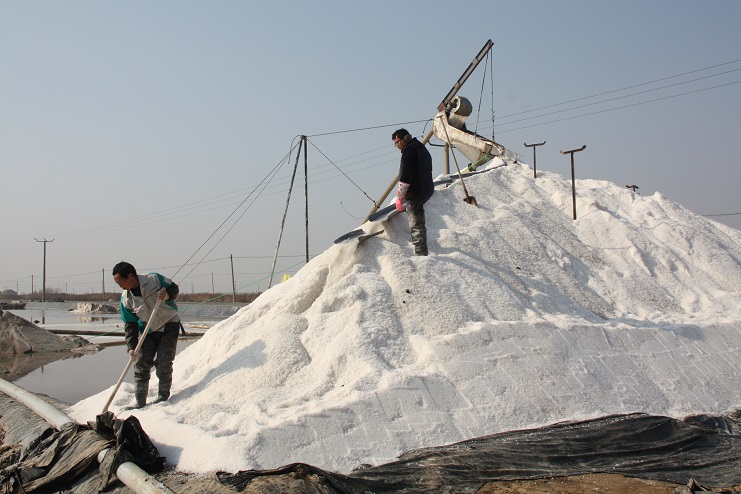 在4班現(xiàn)場,我們看到“唐三零”操作手正在嫻熟的駕駛著機器在鹽池內(nèi)緩緩移動,以認(rèn)真的態(tài)度,飽滿的熱情進行著扒鹽工作。在不遠(yuǎn)處的鹽廩上,雪白的原鹽正通過扒鹽篩匯集而下,大廩工也不時的用分離板進行疏導(dǎo)工作,潔白晶瑩的原鹽蔚然成廩。為了確保原鹽質(zhì)量,生產(chǎn)服務(wù)公司化驗室的工作人員還在扒鹽現(xiàn)場對鹽質(zhì)進行跟蹤監(jiān)測。據(jù)介紹,在扒鹽設(shè)備上,今年日曬制鹽公司除了全面推廣使用五寸管道扒鹽外,又進行了創(chuàng)新,將原來鹽、鹵分離篩上帆布引流裝置改為管道引流,這不僅有效降低了引流裝置的損壞幾率,減少了維修成本,更提高了設(shè)備的使用安全性。據(jù)了解,新河、埒南兩個制鹽分公司計劃共投入8臺扒鹽機組到此次扒鹽工作中來,目前已有七臺機組陸續(xù)出鹽,最后一臺機組也將在近日投入扒鹽工作,為原鹽銷售工作的正常有序開展提供保證。(封楊)
