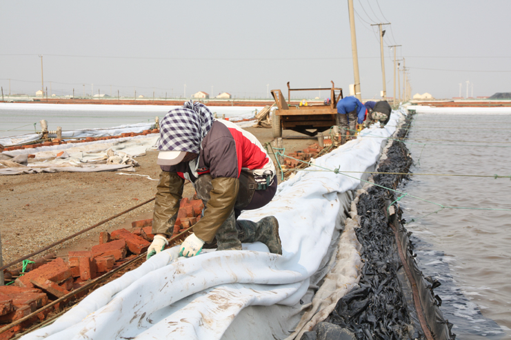 淮鹽歷史悠久、源遠流長,色白粒大、質量上乘,在全國享有較高知名度,曾被譽為“東方明珠”。日曬制鹽公司為了傳承淮鹽歷史,打造鹽業生產品牌,積極推進制鹽生產工藝創新,利用原來的150公頃的海水制鹵灘地資源,結合規?;藴驶牡V鹵日曬制鹽結晶區的生產條件,采用傳統灘曬海鹽生產工藝,進行分散制鹵,提制飽和鹵水,輸送到日曬制鹽結晶區進行集中結晶生產,達產后,將年產高品質原料海鹽5萬噸。據了解,食用原料海鹽基地結晶區選址在新河制鹽分公司的七班和八班一期,目前,該公司對八班一期結晶池進行全面固化,對原先的下馬格進行維修整理灌池,先讓八班的一期結晶池全部實現灌池投產。(季興勝)