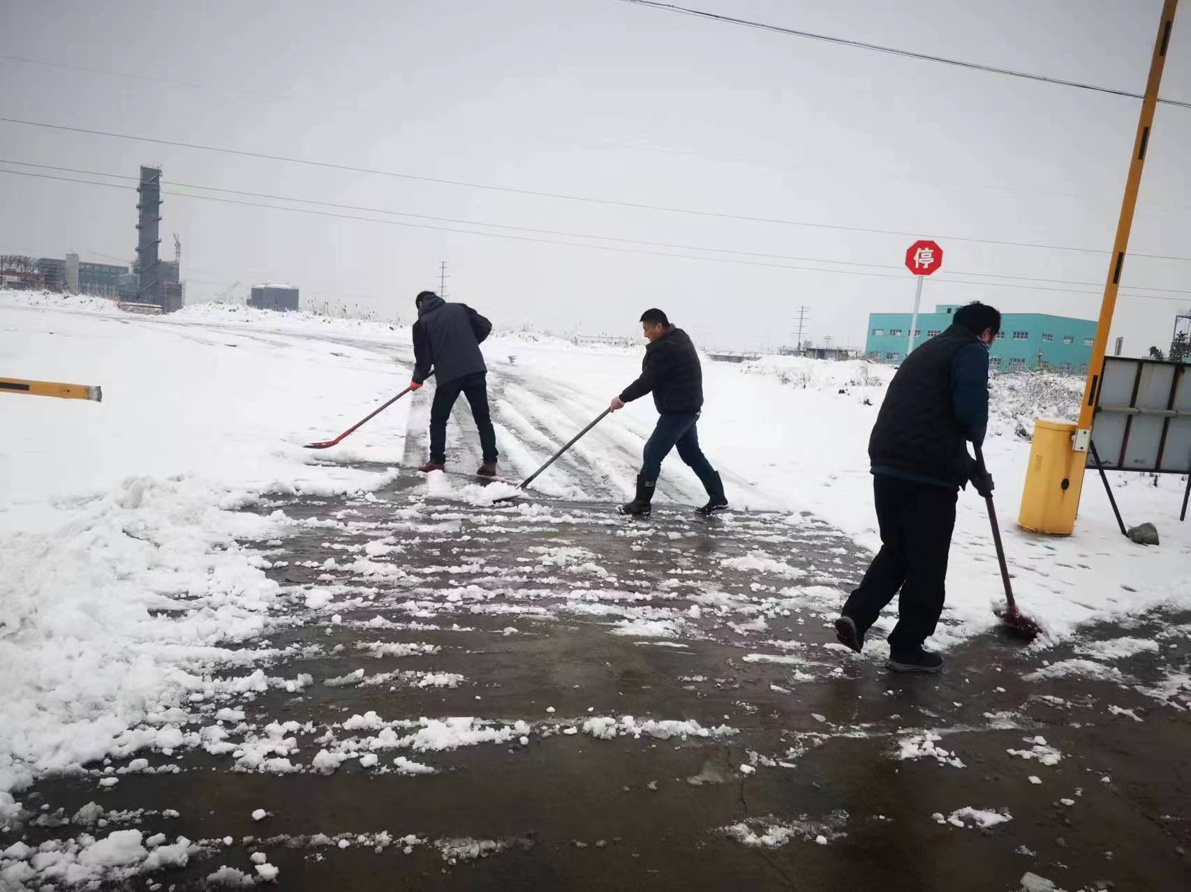 公司第一時間安排專職人員用鏟車將主干道積雪處理完畢,廣大黨員干群主動作為、合理分工,手持勞動工具,分別把人行道和車道,清理出安全通道,一直延伸到碼頭場地,緊繃安全生產這根弦,安全生產不懈怠。