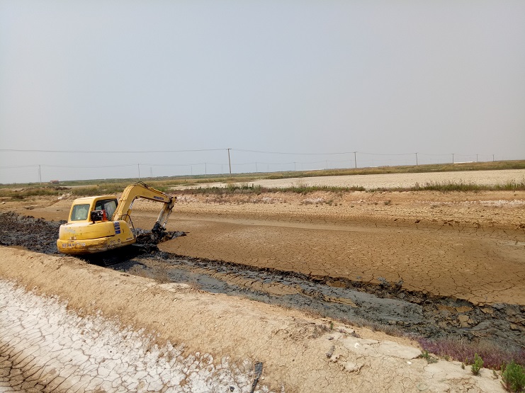 目前,實業公司制鹽分公司、海鹽基地一班正在進行清淤擴容改造工程。