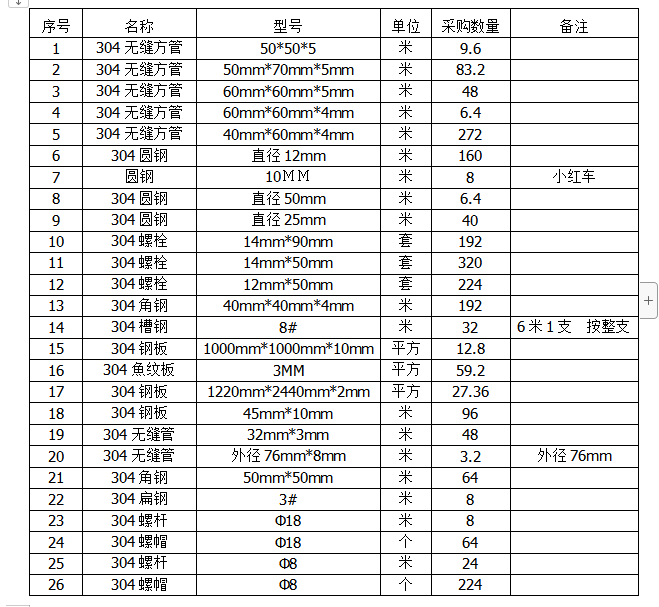 不銹鋼(304)采購項(xiàng)目