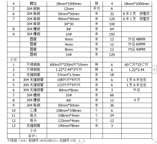 4.項(xiàng)目概況:不銹鋼(304)新牌號(hào)06CR19NI10;舊牌號(hào)0CR18NI9(304不銹鋼)。