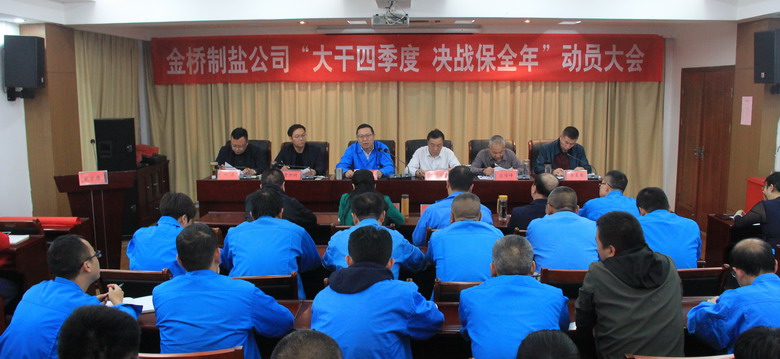 會上,副總經(jīng)理惠志明作了《20191-9月份經(jīng)濟活動分析》。然后,副總經(jīng)理曹開明宣讀了《2019年大干四季度勞動競賽意見》。接著,董事長、黨委書記、總經(jīng)理朱桂玉作了動員講話。最后,加工鹽車間、包裝鹽車間、品種鹽分公司進行表態(tài)發(fā)言。