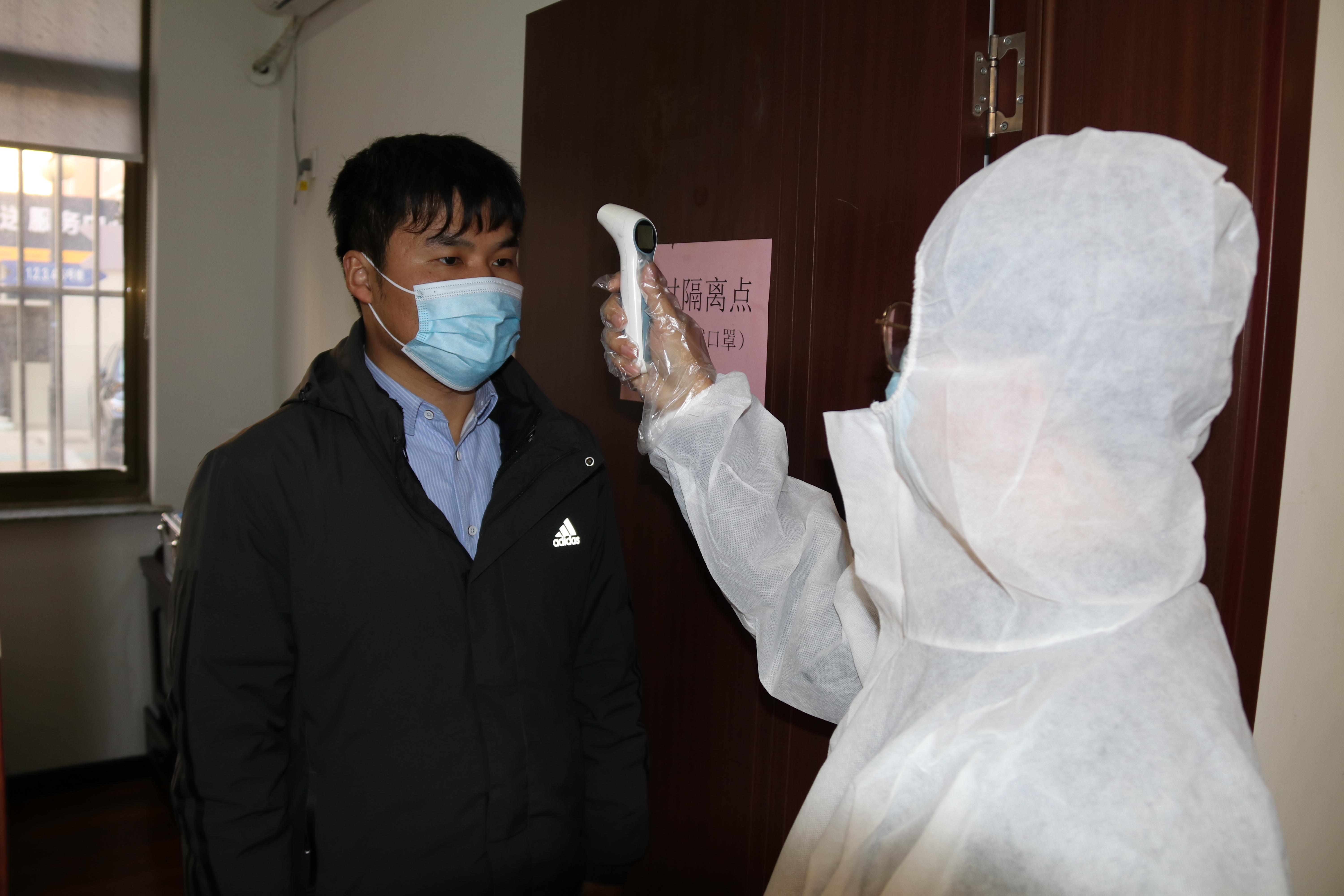 待轉走體溫異常者,消殺組對其所經區域進行全方位消殺,并通知全體工作人員做好防護工作。