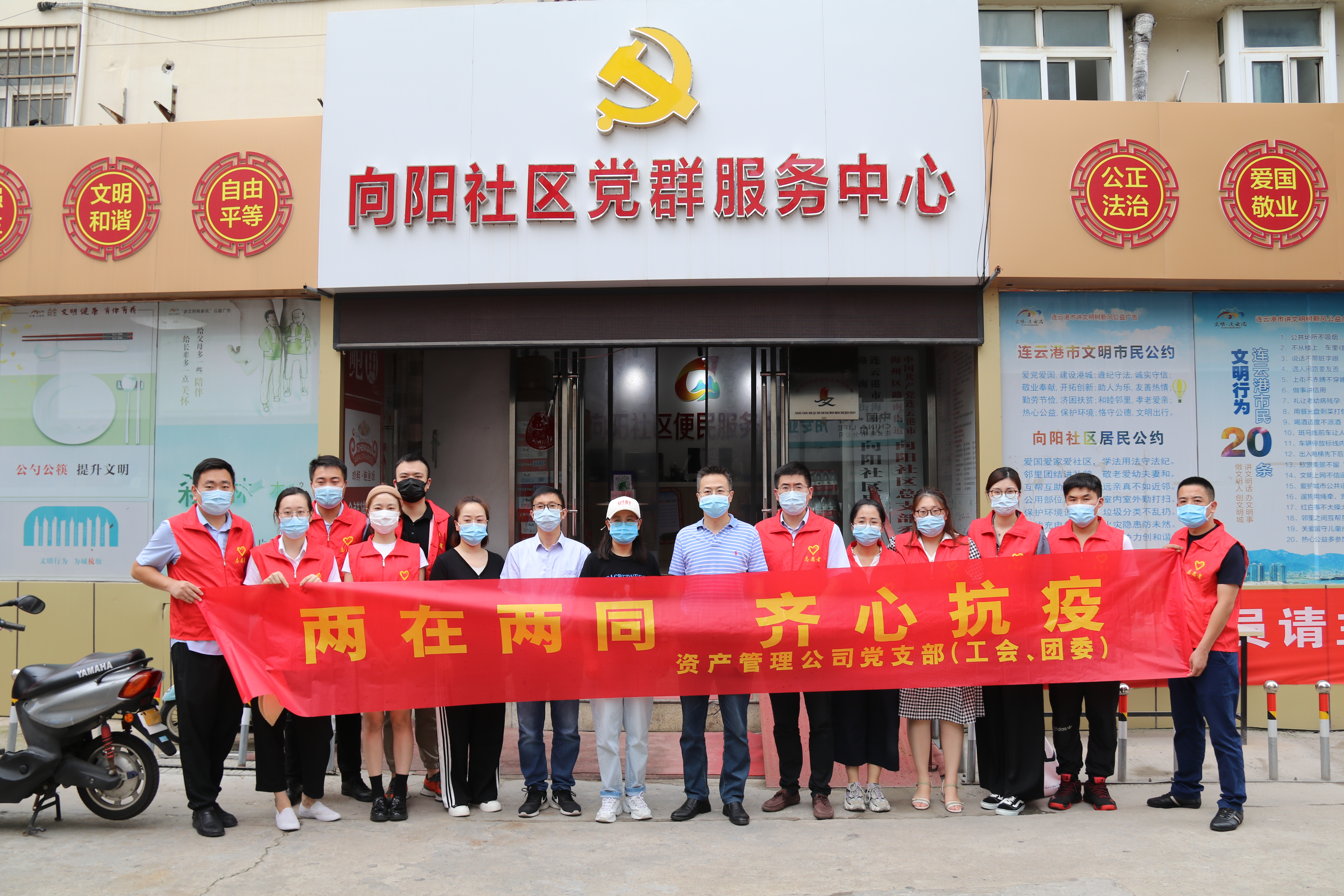 該支部動員20名黨員、青年志愿下沉到抗疫一線,配合海州區向陽社區開展聯動防控,排查走訪,蹲點值守,引導社區居民及時接種疫苗,構筑起疫情防控堅實屏障。8月25日,該支部聯合海州區向陽社區開展“兩在兩同齊心抗疫”主題黨日活動。通過慰問社區防疫工作者,為其捐贈物資;檢查行程碼、測量體溫,登記疫苗接種情況、通知全民核酸檢測,宣傳防疫政策等工作,有效緩解社區防疫工作壓力,切實踐行“三個服務”。