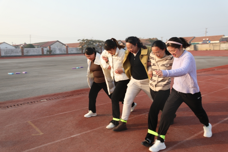 在“障礙接力闖三關”比賽中,5名選手在綁住腿“共赴前程”一關中,不僅考驗隊員們的動作協調,也是考驗隊員們的反應能力。參賽隊員們各展其所能,五花八門的操作技巧,引起現場歡笑聲、喝彩聲不斷。