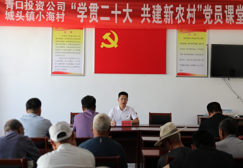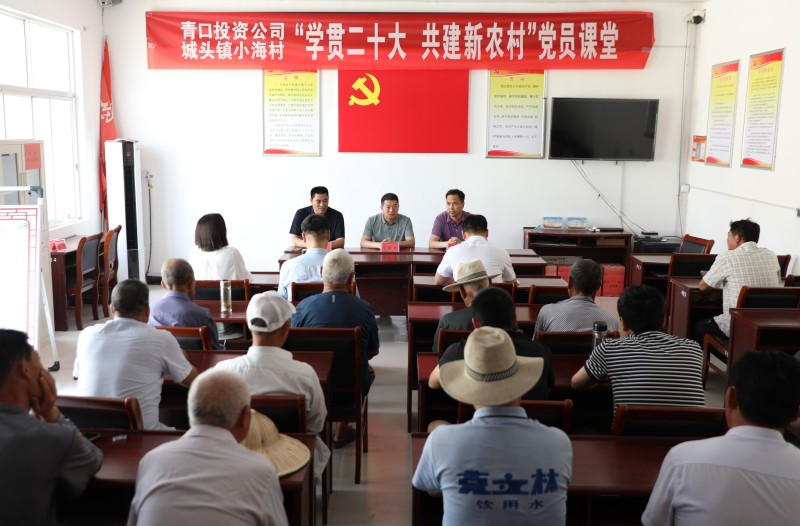 為推動黨的二十大精神在鄉(xiāng)村落地生根,6月28日上午,青口投資公司、城頭鎮(zhèn)小海村聯(lián)合開展“學(xué)貫二十大 共建新農(nóng)村”黨員課堂,由公司機關(guān)優(yōu)秀黨務(wù)干部組成的二十大精神宣講隊,走進結(jié)對共建的贛榆區(qū)城頭鎮(zhèn)小海村開展集中式、通俗化宣講。公司黨委副書記、工會主席梁永,城頭鎮(zhèn)副鎮(zhèn)長王延光,城頭鎮(zhèn)小海村支部書記徐坤參加活動。
