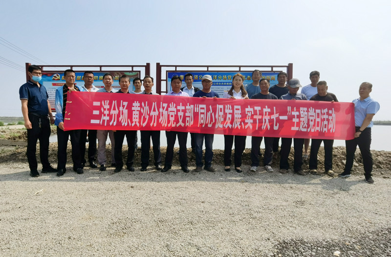 在“同心促發展 實干慶七一”主題黨日活動現場中,三洋分場、黃沙分場黨支部邀請長期在全國從事漁業科技服務的珠江水產研究所彭勇鰲工程師,深入到池塘的養殖一線,查看、詢問養殖戶們在養殖過程中遇到的難題,并有針對性地做出養殖新技術幫扶和推廣志愿服務活動,為養殖戶們排憂解難,不斷提高養殖效益。