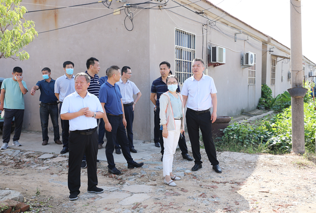 與會人員來到文衛路,聽取了相關負責人關于黃沙坨居民區新建綠化及排水管道改造項目匯報,沿路查看了主道、支道以及排水等生活設施情況。