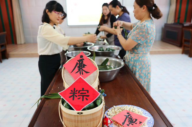 為做好端午節(jié)前廉潔提醒工作,青口公司紀委精心備制了“廉”味套餐,通過“包廉粽 話廉潔”主題活動、廉潔短信、公眾號通報典型案例等教育方式,重申廉潔紀律,為黨員干部打好預防針,提醒他們把好廉潔關,嚴防節(jié)日病。 (瞿 方)