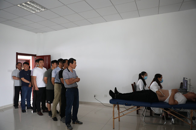 為了保障職工的身體健康,7月2日上午,公司組織所有在崗職工進行體檢。根據當前正處于農忙期間,且職工居住分散的實際情況,公司與體檢中心聯系洽談,在黃沙坨設置體檢點,方便職工就近體檢。