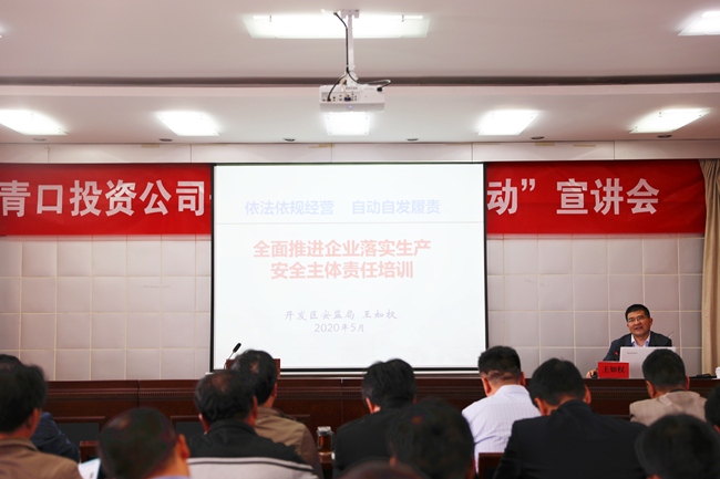 ? 為進一步強化企業(yè)落實安全生產(chǎn)主體責(zé)任意識,推動企業(yè)深入學(xué)習(xí)貫徹《企業(yè)落實安全生產(chǎn)主體責(zé)任重點事項清單》,5月14日下午,青口投資公司組織召開安全生產(chǎn)“春風(fēng)行動”宣講會。公司領(lǐng)導(dǎo)班子成員、安委會成員、各單位黨政工負責(zé)人、安全管理人員和機關(guān)全體管理人員參加,副總經(jīng)理楊守明主持。