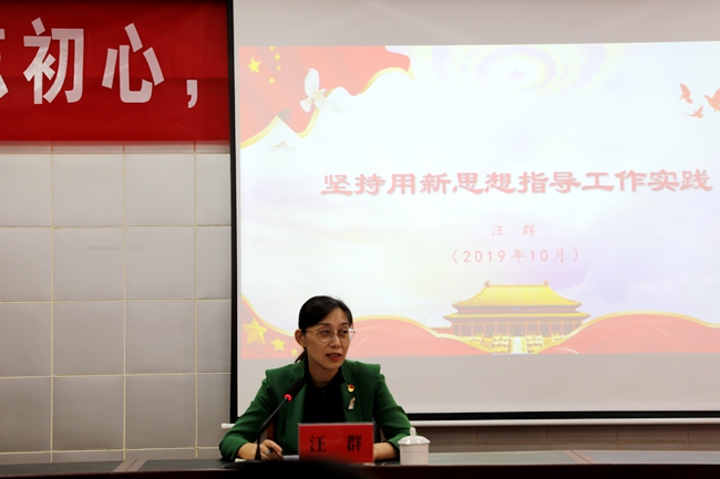汪書記緊緊圍繞“守初心、擔使命、找差距、抓落實”十二字方針,以《堅持用新思想指導工作實踐》為主題,展開了四個方面的內容的講解。一、學習新思想的收獲體會;二、悟初心、擔使命的啟示和想法;三、當前工作中存在的薄弱環節;四、用新思想指導實踐改進工作。