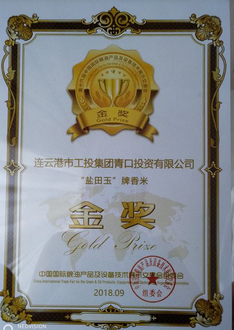 【再獲金獎】青口投資公司“鹽田玉”香米再獲金獎