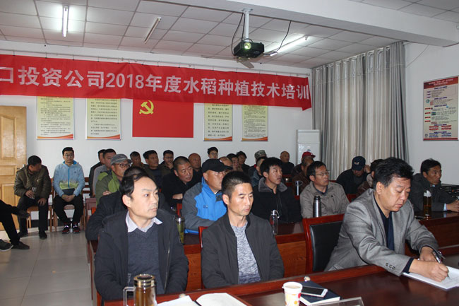 4月4日,青口投資公司開展2018年度水稻種植技術培訓。大新農場全體管理人員、條田工、生態種養中心部分員工參加了此次培訓。公司副總經理周緒祥在培訓會上講話。
