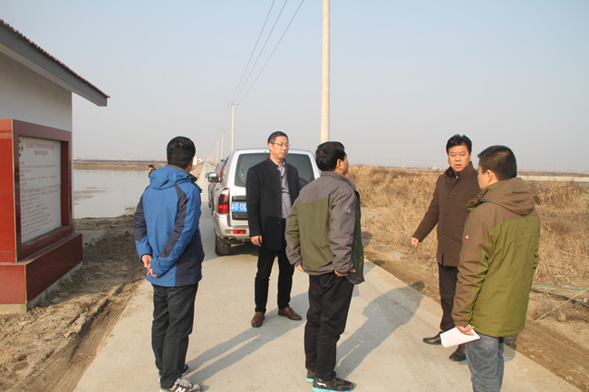 1月17日上午,市農開局副局長成云飛率專家評審組一行,來我公司對申報的市農開優質項目——2015年度青口鹽場黃沙高效養殖示范園區進行實地初評。公司副總經理周緒祥陪同考察。