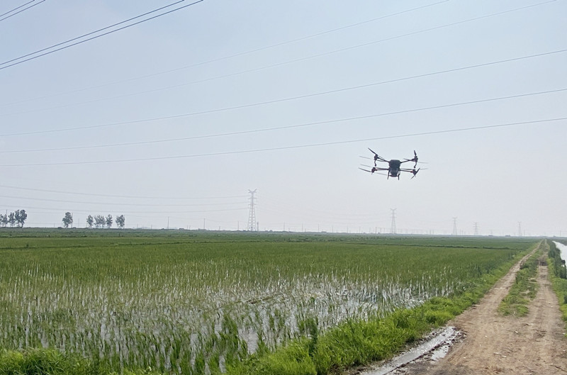 近日,大新農場采用無人機適時開展追施返青肥,每天每臺施肥約400畝,節約人工成本,且噴灑均勻,保證水稻秧苗移栽后能夠及時返青,促進秧苗早分蘗。(大新農場)
