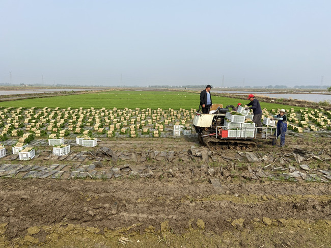 春爭日來夏爭時,莊稼宜早不宜遲。在經過了前期的育秧、整地、施肥、除草等一系列工作后。6月1日,大新農場秉著“快插秧、插好秧”的原則,人機齊上,正式拉開今年水稻插秧的序幕,三家條田組同時進行機械插秧作業。根據目前天氣良好的情況下,一臺插秧機每天能完成40畝的插秧工作,目前已進場作業的插秧機共13臺,農場按照插秧計劃續時推進插秧作業,確保在6月20日前完成水稻插秧工作,為奪取今年水稻豐收打下堅實基礎。(葛蘇)