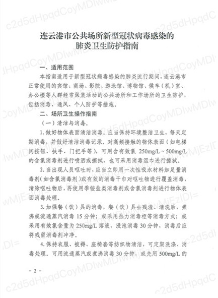 【防護指南】連云港市公共場所新型冠狀病毒感染的肺炎衛生防護指南
