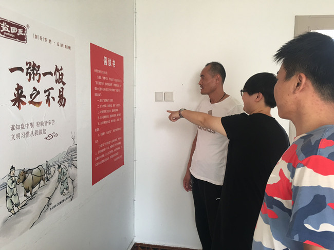 ? 近日,習(xí)近平總書(shū)記對(duì)制止餐飲浪費(fèi)行為作出的重要指示,作為“鹽田玉”品牌的窗口,中心全體人員積極行動(dòng)起來(lái),響應(yīng)“厲行節(jié)約 反對(duì)浪費(fèi) 從我做起的號(hào)召,在職工食堂醒目處張貼“光盤(pán)行動(dòng)”宣傳畫(huà),并分發(fā)“厲行節(jié)約”倡議書(shū),要求全體人員繃緊節(jié)約糧食這根弦,堅(jiān)決制止“舌尖上的浪費(fèi)”,用實(shí)際行動(dòng)引領(lǐng)社會(huì)新風(fēng)尚,力爭(zhēng)成為愛(ài)糧節(jié)糧的倡導(dǎo)者、踐行者、宣傳者,營(yíng)造“浪費(fèi)可恥、節(jié)約光榮”的良好氛圍。  (鄭? 江)