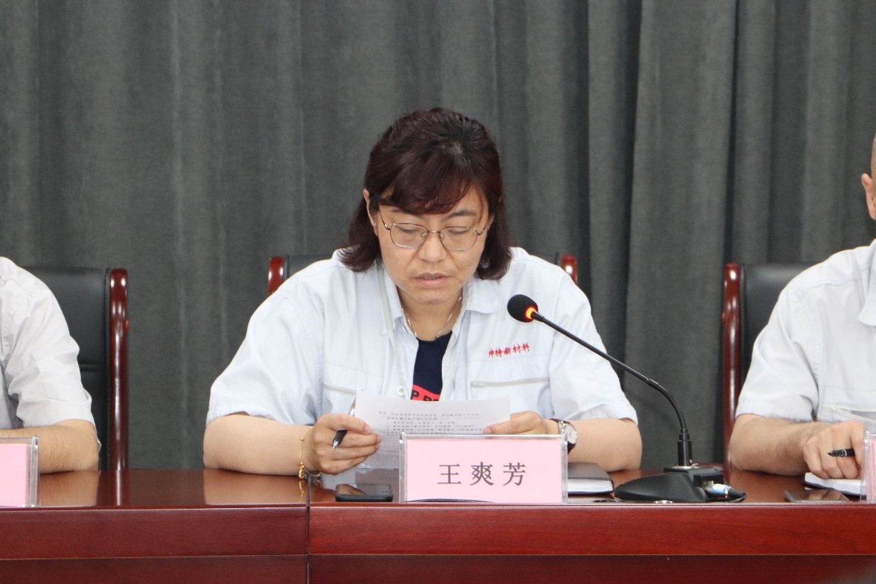 公司副總經理王爽芳宣讀“拜師學藝,崗位成才”活動師徒責任書內容。