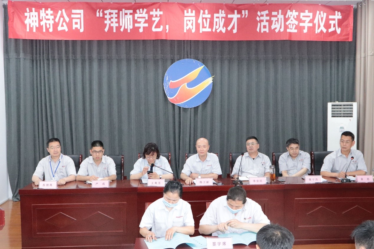 612日下午,公司在一樓會議室舉辦“拜師學藝,崗位成才”活動簽字儀式,公司領導班子成員、全體管理人員、結對師徒雙方參加。簽字儀式由公司工會主席袁忠主持。