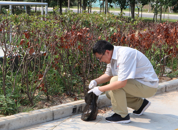 本次活動針對公司廠區(qū)內(nèi)綠化帶存在的衛(wèi)生死角問題,從“以人為本,服務(wù)一線,清潔環(huán)境,人人有責(zé)”的理念出發(fā),發(fā)動黨員、團(tuán)員開展了環(huán)境衛(wèi)生整治活動?;顒悠陂g,廠區(qū)內(nèi)處處都能看到手拿掃帚、垃圾袋等工具的黨員、團(tuán)員同志的身影。在高溫天氣下,他們不畏炎熱,不怕臟、不怕累,一個個干勁十足,忙得汗流浹背,他們對廠區(qū)內(nèi)綠化地帶進(jìn)行了仔細(xì)地清理打掃。