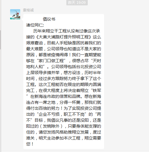 ? ? ? ??精兵強將,火速支援。疫情來勢兇猛,很多人都難逃魔爪,造成翔立用人短缺,面臨這種難題,翔立鐵軍經受住了考驗。朱文江同志陽轉陰后,火速到崗,第一時間帶領大家繼續奮戰;老黃牛喬以成同志已經一個多星期每天吃住都在公司,就是為了自己能夠健健康康接著干;袁桂誠同志負責安全管理,但當看到人員短缺,緊急上崗,一邊督促著大家安全生產,一邊手頭上的活也沒停下;丁祥生同志輕燒不下火線,每天吃點藥準時到達現場......正是有了這些敬業的人,翔立才能一次次在困境中走出去,在投資公司黨委的堅強領導下,翔立人將繼續發揚鐵軍精神,昂揚“四再”創業精神,淬煉“四拼”工作作風,攻堅克難,為臺北的發展拼盡每一份力!