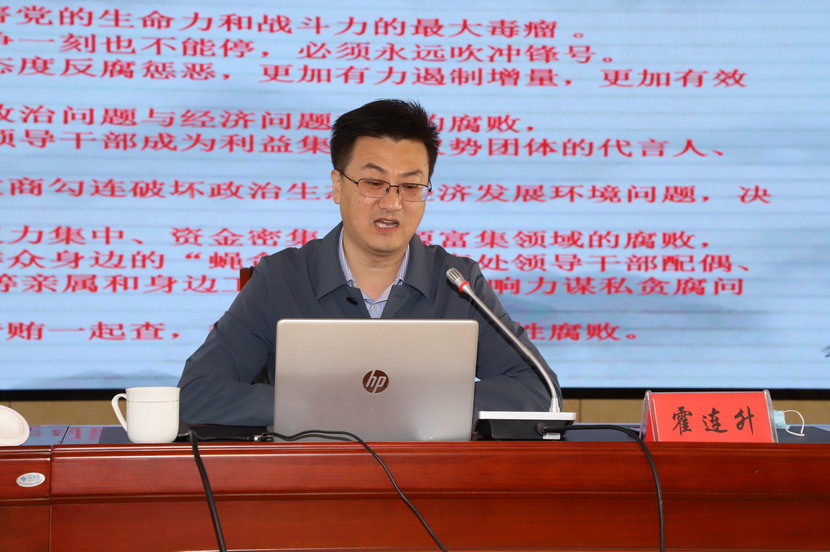 本次廉政教育報告會邀請了市紀委監委第八監督檢查室主任霍連升同志專題授課,霍連升主任在題為《以案明紀、遵規守法,做國有企業的廉潔從業表率》的報告中,圍繞分析當前形勢,明確反腐任務;剖析典型案例,汲取深刻教訓;增強法紀觀念,嚴守廉潔底線等三方面進行授課,深入闡述了習近平總書記關于黨風廉政建設和反腐敗斗爭重要論述,重點解讀了新時代反腐敗斗爭形勢,結合近年來本地查處的違法違紀典型案件,為全體黨員干部上了一堂主題鮮明、內容豐富、成效顯著的黨風廉政教育課。
