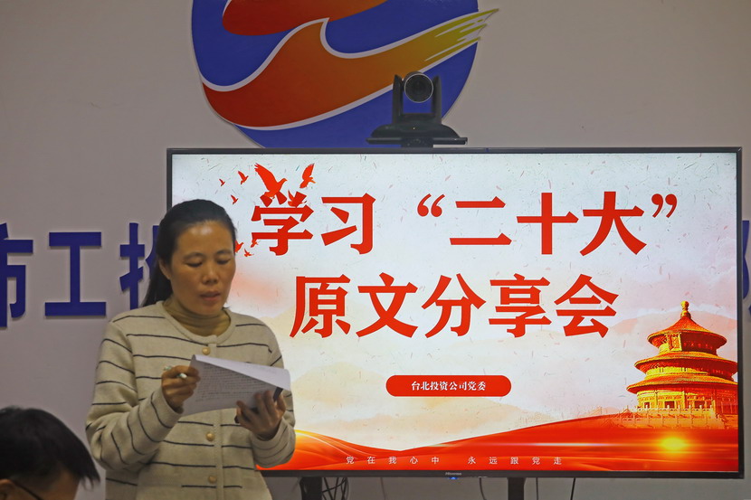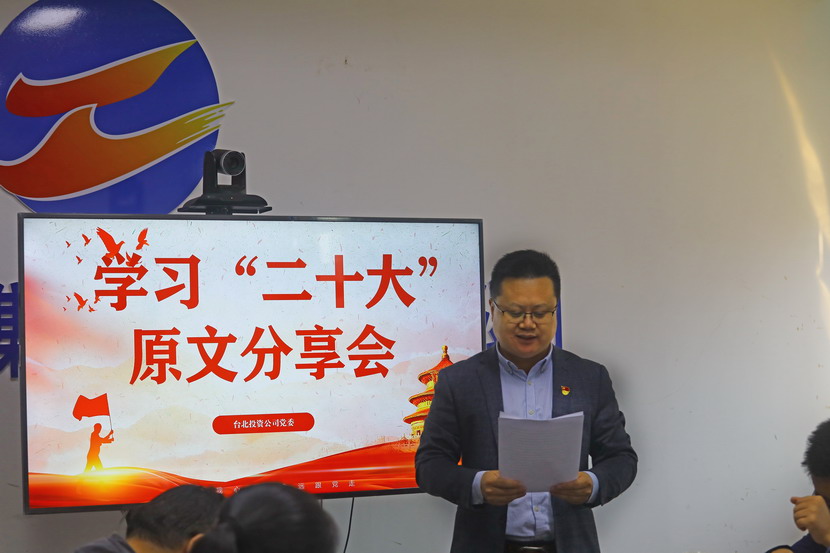 1021日,臺北投資公司黨委組織召開黨的二十大報告學習交流會,每位同志閱讀報告原文,針對報告內容結合工作實際,分享心得體會、暢談工作思路、謀劃未來發展。